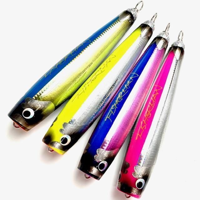マグロやGTに特化した長めのボディを持つスイミングポッパーです。 向かい風にも強く十分な飛距離が出ます。