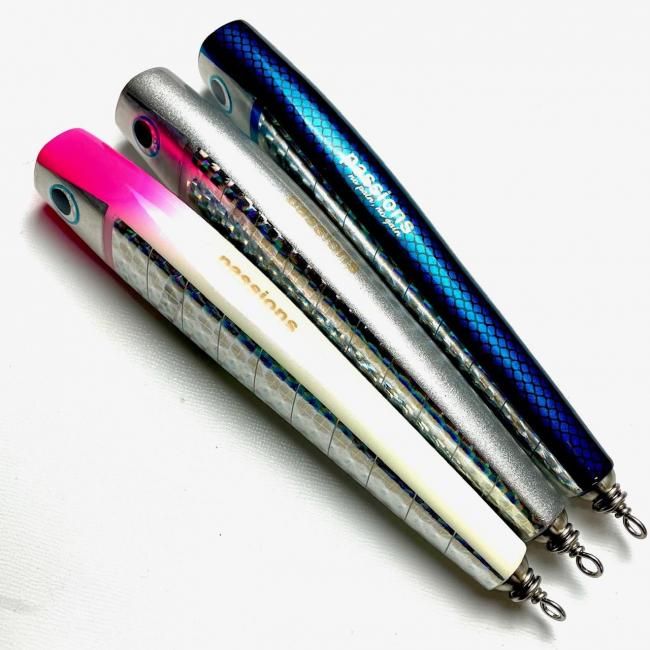 マグロ誘い出し専用ウッド製ポッパー よく飛び水絡みが良く、浮くスピードを速くする事をコンセプトした。 お勧めの操作法はロングジャークして泡をまとわせ 泡の中で3〜5秒ステイさせる。 フック 5.5g前後